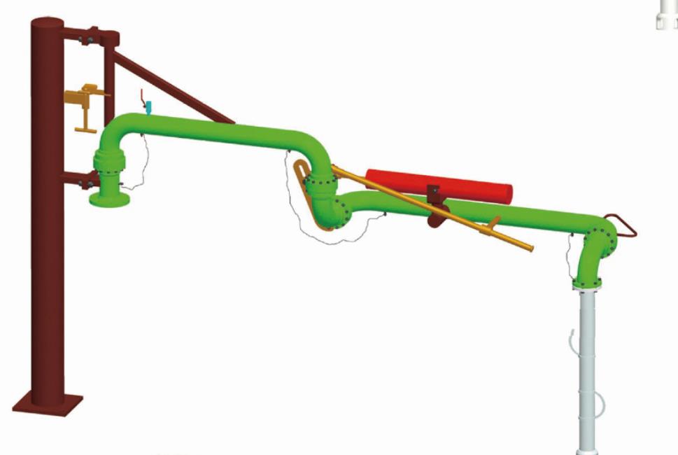 - 外臂:可在水平面和垂直面的范圍內轉動,主要用于裝卸臂同槽車、槽船調整對接工作位置的部件
