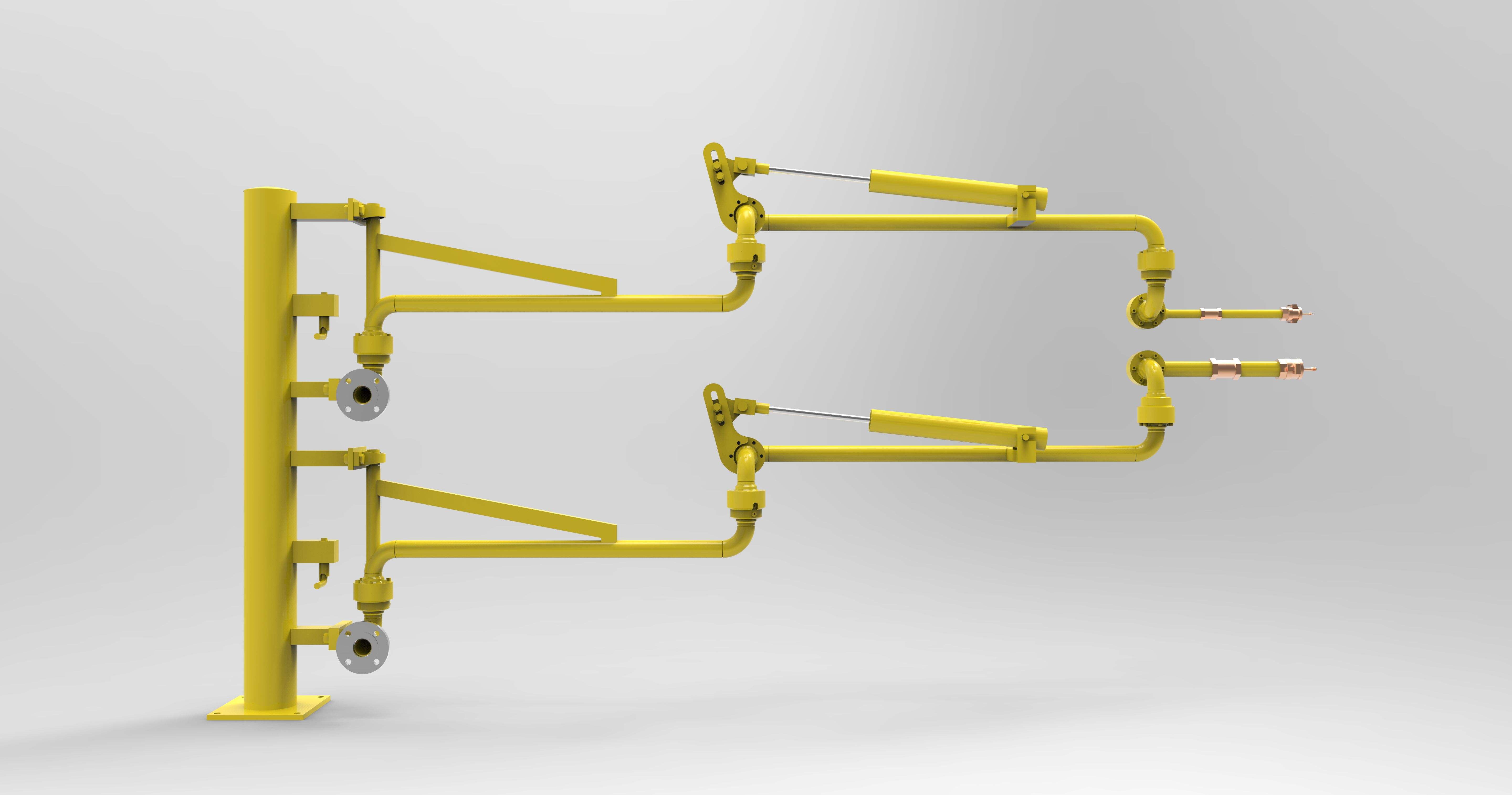 首先來了解一下什么是鶴管,鶴管又叫液體裝卸臂,是由旋轉接頭、內臂、外臂、垂管(主要陸用)、三維接頭(主要船用),平衡器、控制系統等部件組成,主要用于汽車槽車、火車槽車或槽船裝卸液體介質的裝卸設備。